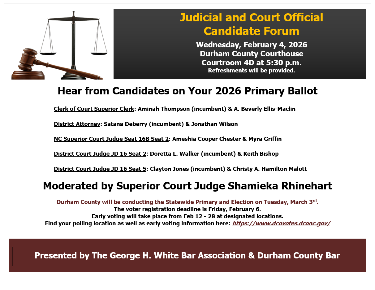 The home of the Sixteenth Judicial District Bar, Durham County Bar Association and the Durham Bar Foundation.